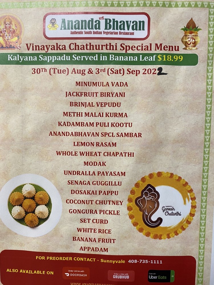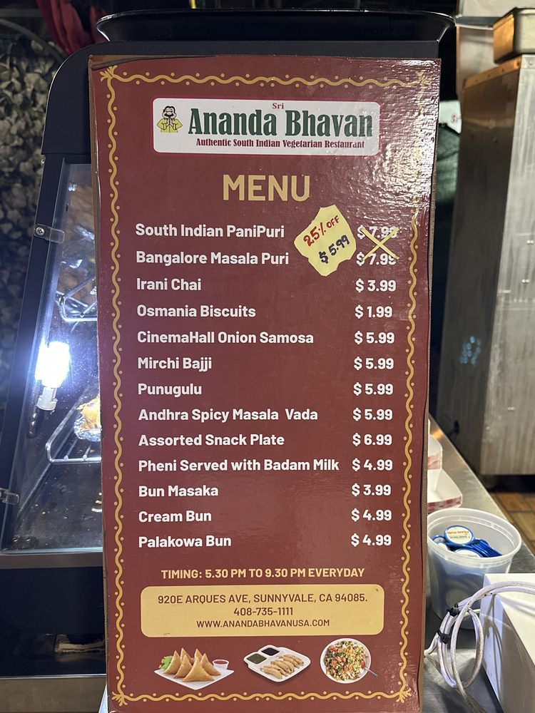 Sri Ananda Bhavan, a vegetarian Indian restaurant in Sunnyvale, offers a diverse menu with vegan options and many vegetarian choices. Known for their delicious dosas and idlis, the outdoor seating area provides a vibrant ambiance. Customers praise the outdoor snack counters, such as the panipuri and masala puri, offering unique flavors. The restaurant's unique offerings like Bun Maska, Irani Chai, and Osmania biscuits add a refreshing twist. With quick service and ample seating indoors and outdoors, Sri Ananda Bhavan creates a comfortable dining experience. The menu also includes popular dishes like Thali options and authentic South Indian snacks. The establishment's commitment to quality and customer satisfaction is evident in their consistent food standards and friendly service. Experience the culinary delights of Sri Ananda Bhavan for a taste of traditional Indian cuisine in a casual, inviting setting.